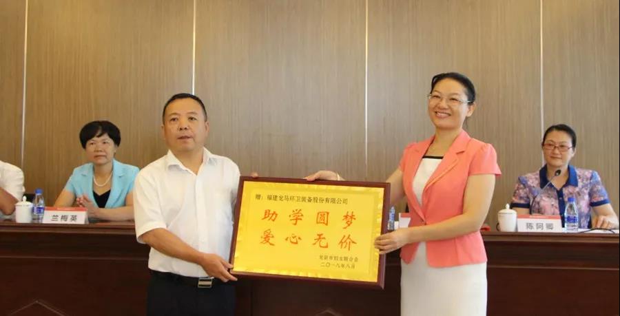 活動(dòng)中,市婦聯(lián)與福建龍馬環(huán)衛(wèi)裝備股份有限公司簽訂了“福龍馬”春蕾圓夢(mèng)助學(xué)行動(dòng)項(xiàng)目協(xié)議,該項(xiàng)目暫定持續(xù)5年,福建龍馬環(huán)衛(wèi)裝備股份有限公司每年意向捐贈(zèng)20萬(wàn)元,用于資助我市高中應(yīng)屆畢業(yè)的貧困優(yōu)秀女大學(xué)生。同時(shí),市婦聯(lián)還向福建龍馬環(huán)衛(wèi)裝備股份有限公司授"助學(xué)圓夢(mèng) 愛(ài)心無(wú)價(jià)"牌匾。