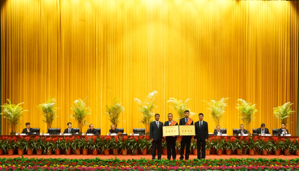 董事長張桂豐、總裁張桂潮為先進集體頒獎。