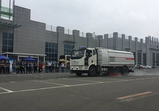 “福龍馬”牌解放底盤(pán)破碎樹(shù)葉洗掃車、路面養(yǎng)護(hù)車參與本次展會(huì)的路演環(huán)節(jié),其優(yōu)異的性能及出色的作業(yè)效果獲得了在場(chǎng)領(lǐng)導(dǎo)嘉賓的一致好評(píng)。