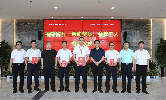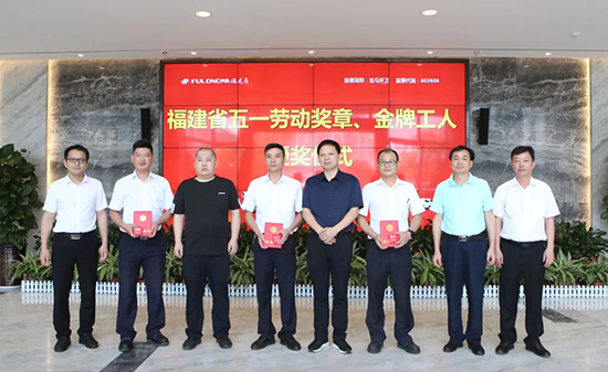 6月12日上午,福建省五一勞動(dòng)獎(jiǎng)?wù)?、金牌工人授?jiǎng)儀式在龍馬環(huán)衛(wèi)研發(fā)大樓舉行。龍巖市總工會(huì)副主席羅振基、龍巖市總工會(huì)勞動(dòng)和經(jīng)技工作部副部長王偉、龍巖經(jīng)開區(qū)(高新區(qū))總工會(huì)常務(wù)副主席賴榮煥共同為龍馬環(huán)衛(wèi)福建省五一勞動(dòng)獎(jiǎng)?wù)芦@得者修人立、金牌工人獲得者胡秀金、 傅顏洪、蘇文鋒授獎(jiǎng)。