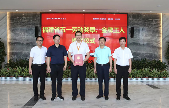 為福建省五一勞動(dòng)獎(jiǎng)?wù)芦@得者修人立授獎(jiǎng)