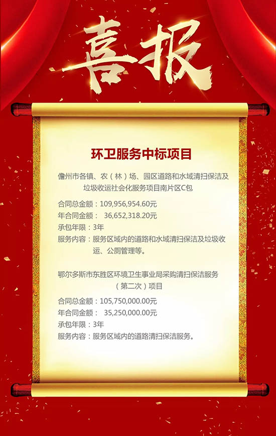喜報 | 環(huán)衛(wèi)服務項目捷報傳來