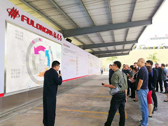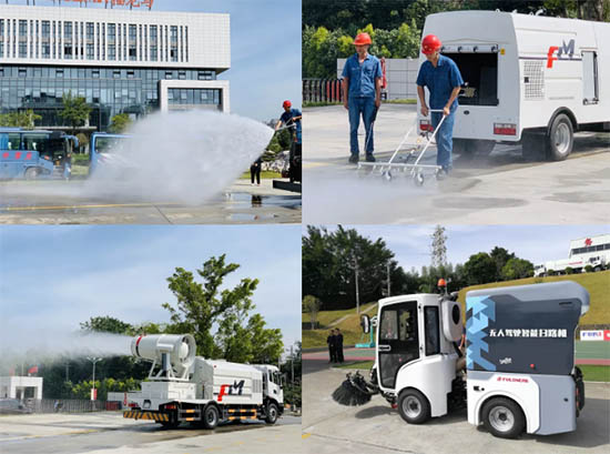 在龍馬環(huán)衛(wèi)的廠區(qū),“福龍馬”牌環(huán)衛(wèi)作業(yè)車輛早已列隊等候,一輛接一輛為大家演示作業(yè)流程。