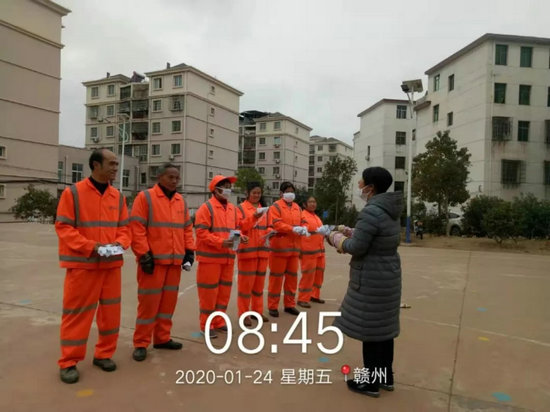 二是組織對環(huán)衛(wèi)保潔人員進(jìn)行防控培訓(xùn),指導(dǎo)環(huán)衛(wèi)保潔人員做好自身安全防護(hù)措施。各項(xiàng)目公司管理人員組織召開各層級疫情防疫專題會議,向一線環(huán)衛(wèi)工人講解疫情的癥狀情況及防治辦法,并發(fā)放防護(hù)口罩,要求環(huán)衛(wèi)工人工作時(shí)需穿工作服(或防護(hù)服),配戴口罩、手套,避免用手直接觸摸口、鼻或眼睛。作業(yè)結(jié)束后立刻用含有效成分(可用 AHD2000手消毒劑)的洗手液和流水認(rèn)真洗手,換洗工作服,保持個(gè)人衛(wèi)生。增強(qiáng)環(huán)衛(wèi)工人自我保護(hù)意識,全力應(yīng)對疫情的發(fā)展。