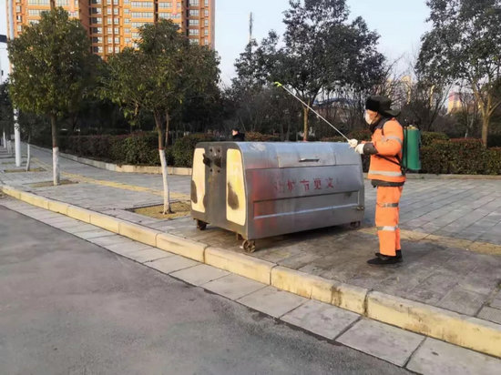 三是做好作業(yè)工具和場所的消毒滅菌工作,加強(qiáng)環(huán)衛(wèi)作業(yè)管理。配合環(huán)衛(wèi)主管部門杜絕醫(yī)療廢棄物混入生活垃圾處理系統(tǒng)。對城鄉(xiāng)人員密集區(qū)域、垃圾集中重點(diǎn)區(qū)域、中轉(zhuǎn)站、公廁等人員密集區(qū)和細(xì)菌易滋生處進(jìn)行巡回消殺作業(yè),將各項(xiàng)預(yù)防措施落實(shí)到實(shí)處。