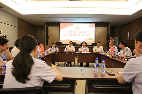 為慶祝中國(guó)共產(chǎn)黨成立99周年,7月1日龍馬環(huán)衛(wèi)黨委與中共龍巖經(jīng)濟(jì)技術(shù)開(kāi)發(fā)區(qū)稅務(wù)局機(jī)關(guān)第三支部共同開(kāi)展慶祝建黨99周年暨黨建共建走進(jìn)企業(yè)——“落實(shí)減稅降費(fèi)、助力復(fù)產(chǎn)復(fù)工”的主題黨日活動(dòng)。