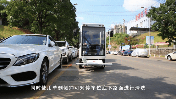 高壓對沖寬度達(dá)9m,可對路面進(jìn)行沖洗保潔作業(yè),同時(shí)使用單側(cè)側(cè)沖可對停車位底下路面進(jìn)行清洗,將樹葉、塑料袋等垃圾沖出車底。