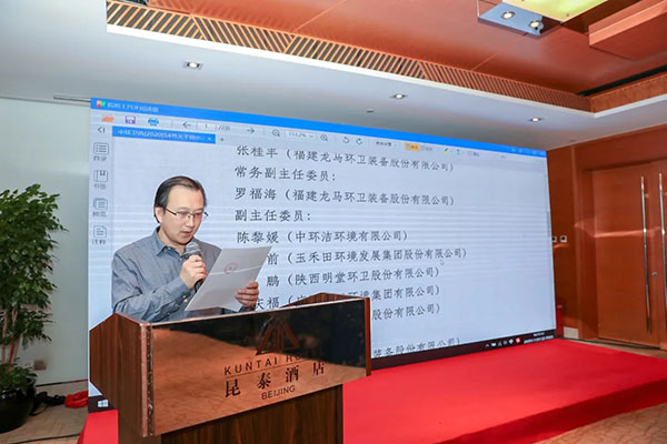 大會(huì)現(xiàn)場(chǎng),中環(huán)協(xié)副會(huì)長(zhǎng)兼秘書長(zhǎng)劉晶昊宣讀了“關(guān)于同意環(huán)衛(wèi)作業(yè)運(yùn)營(yíng)專業(yè)委員會(huì)機(jī)構(gòu)調(diào)整的函”。