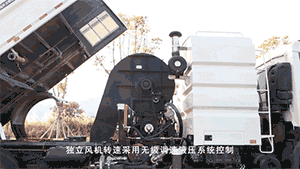 后置小風(fēng)機(jī)轉(zhuǎn)速采用無(wú)級(jí)調(diào)速液壓系統(tǒng)控制,可在駕駛艙內(nèi)控制其任意轉(zhuǎn)速,作業(yè)效率高。