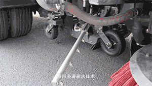 應(yīng)用多道刷洗技術(shù),即清掃刷歸攏可見(jiàn)固體垃圾+V型高壓噴水打擊路面塵土,整車洗掃凈率高。