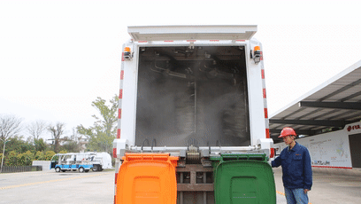 該車支持一鍵清洗功能,垃圾桶裝夾好后,只需按下一鍵清洗按鈕,即可完成所有清洗作業(yè),方便快捷。