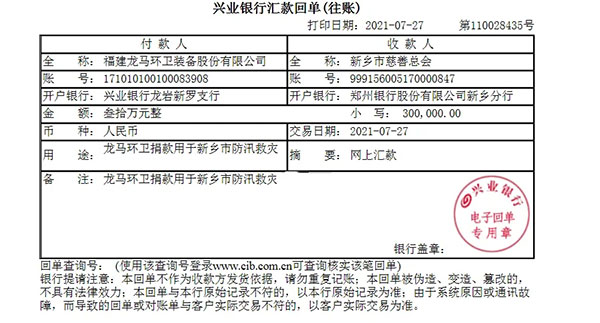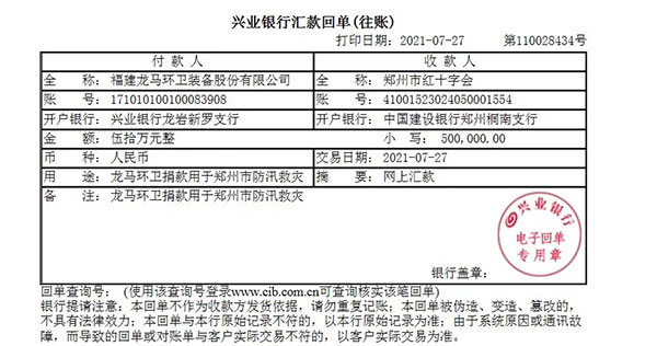災(zāi)難面前,龍馬環(huán)衛(wèi)將積極履行并主動承擔(dān)社會責(zé)任,盡綿薄之力同河南同胞一起抗擊災(zāi)難重建家園,盡快讓河南人民的生產(chǎn)生活回到正軌。