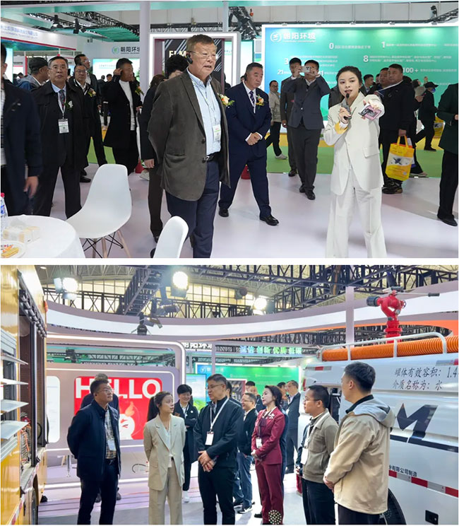 第十四屆全國(guó)政協(xié)常委、九三學(xué)社中央原副主席賴明,中國(guó)建設(shè)科技集團(tuán)股份有限公司黨委書(shū)記、董事長(zhǎng)孫英,全國(guó)性行業(yè)協(xié)會(huì)商會(huì)第一聯(lián)合黨委副書(shū)記、第一聯(lián)合紀(jì)委書(shū)記趙富海,中國(guó)城市環(huán)境衛(wèi)生協(xié)會(huì)會(huì)長(zhǎng)徐文龍,香港特區(qū)政府環(huán)境保護(hù)署首席環(huán)境保護(hù)主任吳素真,中國(guó)再生資源回收利用協(xié)會(huì)會(huì)長(zhǎng)徐鐵城,中國(guó)循環(huán)經(jīng)濟(jì)協(xié)會(huì)常務(wù)副會(huì)長(zhǎng)趙凱,深圳市城市管理和綜合執(zhí)法局黨組成員、副局長(zhǎng)馮增軍等蒞臨展位指導(dǎo)。